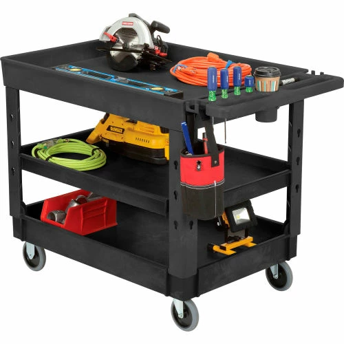 Global Industrial Flat Top Utility Cart w/2 Shelves, 44"L x 25-1/2"W x 32-1/2"H, Black