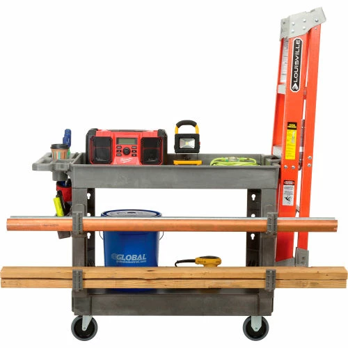 Global Industrial Utility Cart w/2 Tray Shelves & 5" Casters, 44"L x 25-1/2"W x 32-1/2"H