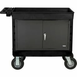Global Industrial Plastic Utility Cart w/2 Tray Shelves, 44"L x 25-1/2"W x 32-1/2"H, Black