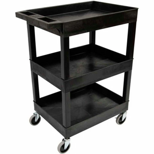 - Molded plastic shelves and legs will never rust, dent, scratch or stain
