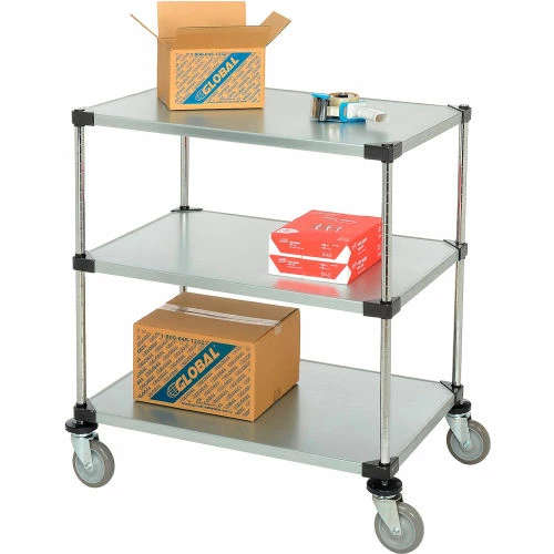 Global Industrial Steel Utility Cart w/2 Tray Shelves, 1200 lb. Capacity, 30"L x 18"W x 35"H