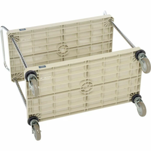 - Includes 2 shelves, 2 Chrome U handles, snap-on sleeves and polyurethane swivel casters, 2 with brakes
