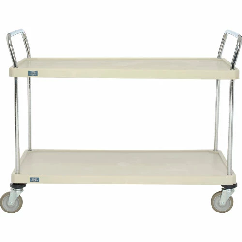 - Includes 2 shelves, 2 Chrome U handles, snap-on sleeves and polyurethane swivel casters, 2 with brakes