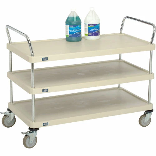 Nexel® Chrome Utility Cart w/3 Shelves & Poly Casters, 1200 lb. Capacity, 36"L x 18"W x 39"H