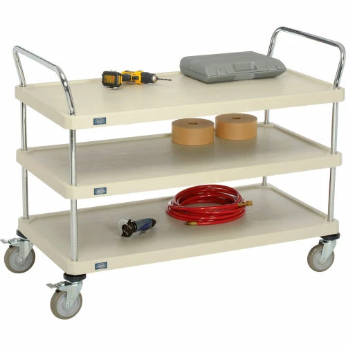 Global Industrial Tray Top Utility Cart w/2 Shelves, 44"L x 25-1/2"W x 35-1/2"H, Gray