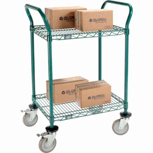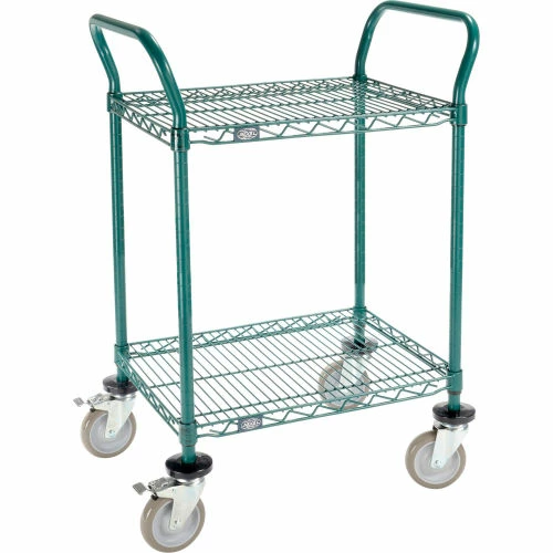 - Includes 2 shelves, 2 U handles, and 4 polyurethane swivel casters, 2 with brakes
