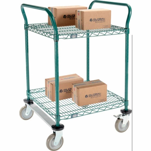 - Includes 2 shelves, 2 U handles, and 4 polyurethane casters, 2 rigid, 2 swivel with brake, 1 tie bar