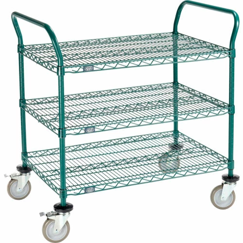 - Includes 3 shelves, 2 U handles, and 4 polyurethane swivel casters, 2 with brakes