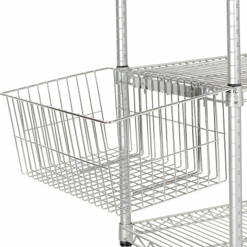 Nexelate®, features a silver epoxy powder coat over rust inhibiting undercoat resulting in an attractive, rugged and affordable shelving unit. This epoxy wire shelving is NSF approved for wet or dry use. Limited seven year warranty against rust and corrosion.
