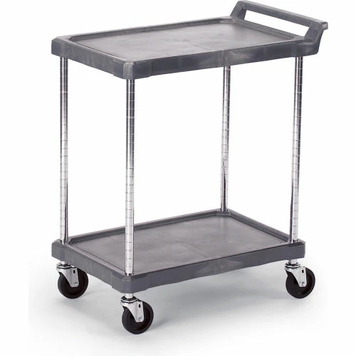Global Industrial Plastic Utility Cart w/2 Tray Shelves, 44"L x 25-1/2"W x 32-1/2"H, Black