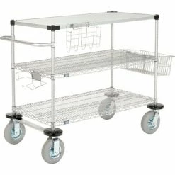 Nexel® Utility Cart, 3 Shelf, Poly-Green®, 36"L x 24"W x 39"H, Polyurethane Rigid Casters