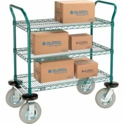 Nexel® Utility Cart, 3 Shelf, Poly-Green®, 36"L x 24"W x 39"H, Polyurethane Swivel Casters