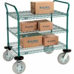 Nexel® Utility Cart, 3 Shelf, Poly-Green®, 24"L x 24"W x 42"H, Pneumatic Rigid Casters