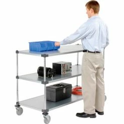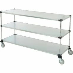 Nexel® Adjustable Shelf Cart w/3 Shelves, 800 lb. Capacity, 72"L x 24"W x 40"H, Silver