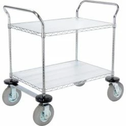 Nexel® Chrome Wire Shelf Instrument Cart w/2 Shelves, 1200 Ib. Capacity, 60"L x 24"W x 44"H