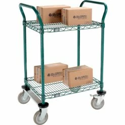 Nexel® Utility Cart, 2 Shelf, Poly-Green®, 24"L x 18"W x 39"H, Polyurethane Rigid Casters