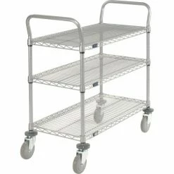Nexel® Utility Cart w/2 Shelves & Poly Casters, 1200 lb. Capacity, 42"L x 24"W x 39"H, Silver