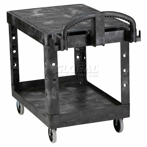 Global Industrial Plastic Utility Cart w/2 Tray Shelves, 44"L x 25-1/2"W x 32-1/2"H, Black